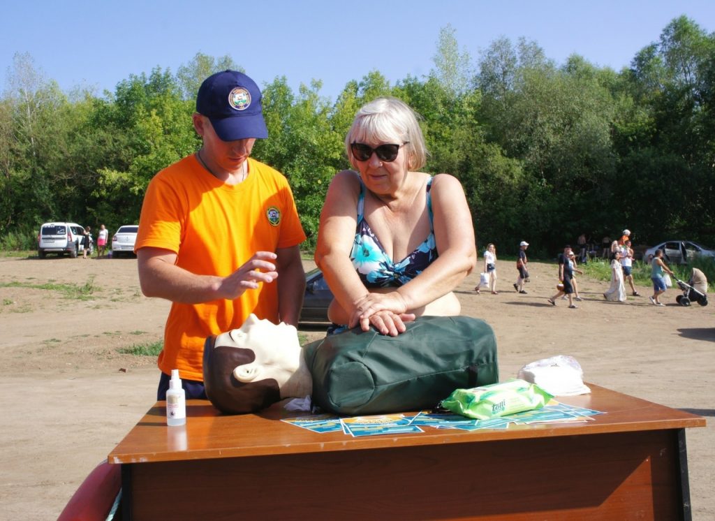 Спасатели Поисково-спасательного отряда Управления гражданской защиты г. Уфы рассказали отдыхающим о том, как понять, жив человек или мертв, о том, в каких случаях нужно проводить сердечно-легочную реанимацию и когда она будет только во вред. Каждый желающий мог на специальном манекене отточить полученные знания.