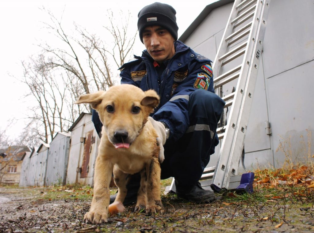 Сотрудники Поисково-спасательного отряда Управления гражданской защиты г. Уфы помогли застрявшему между гаражами щенку. К спасателям обратились неравнодушные местные жители: они услышали, как жалобно скулит животное. Уфимцы пытались сами вытащить его, но у них ничего не получилось: расстояние между гаражами узкое, к пёсику никак не подобраться.