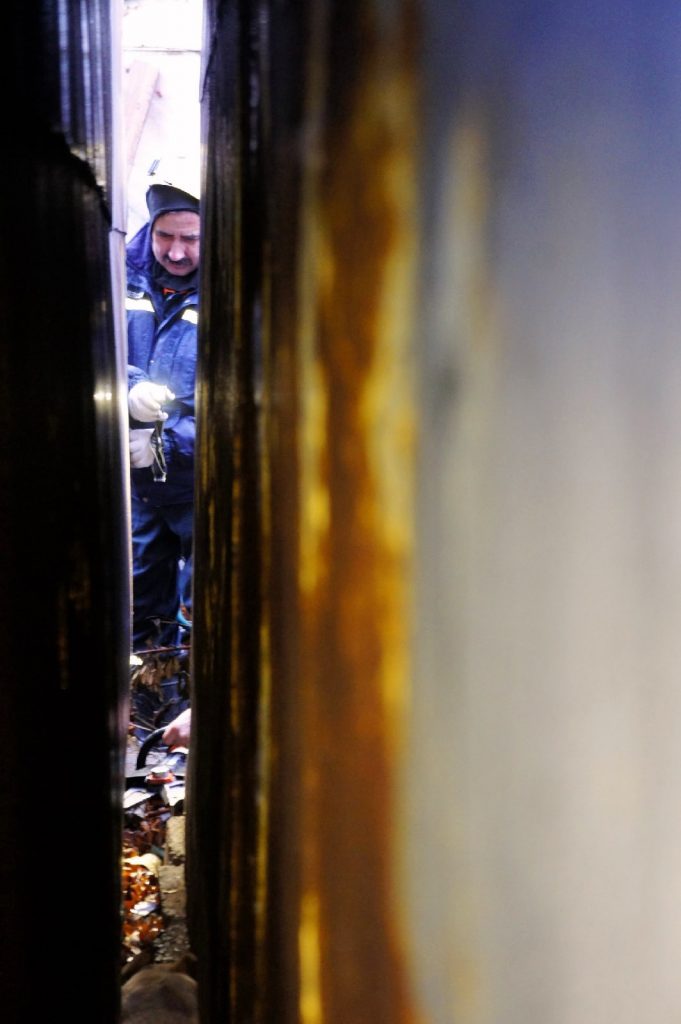 Прибывшие спасатели при помощи гидравлического инструмента расширили проём, достали перепуганного щенка и передали его заявителям.