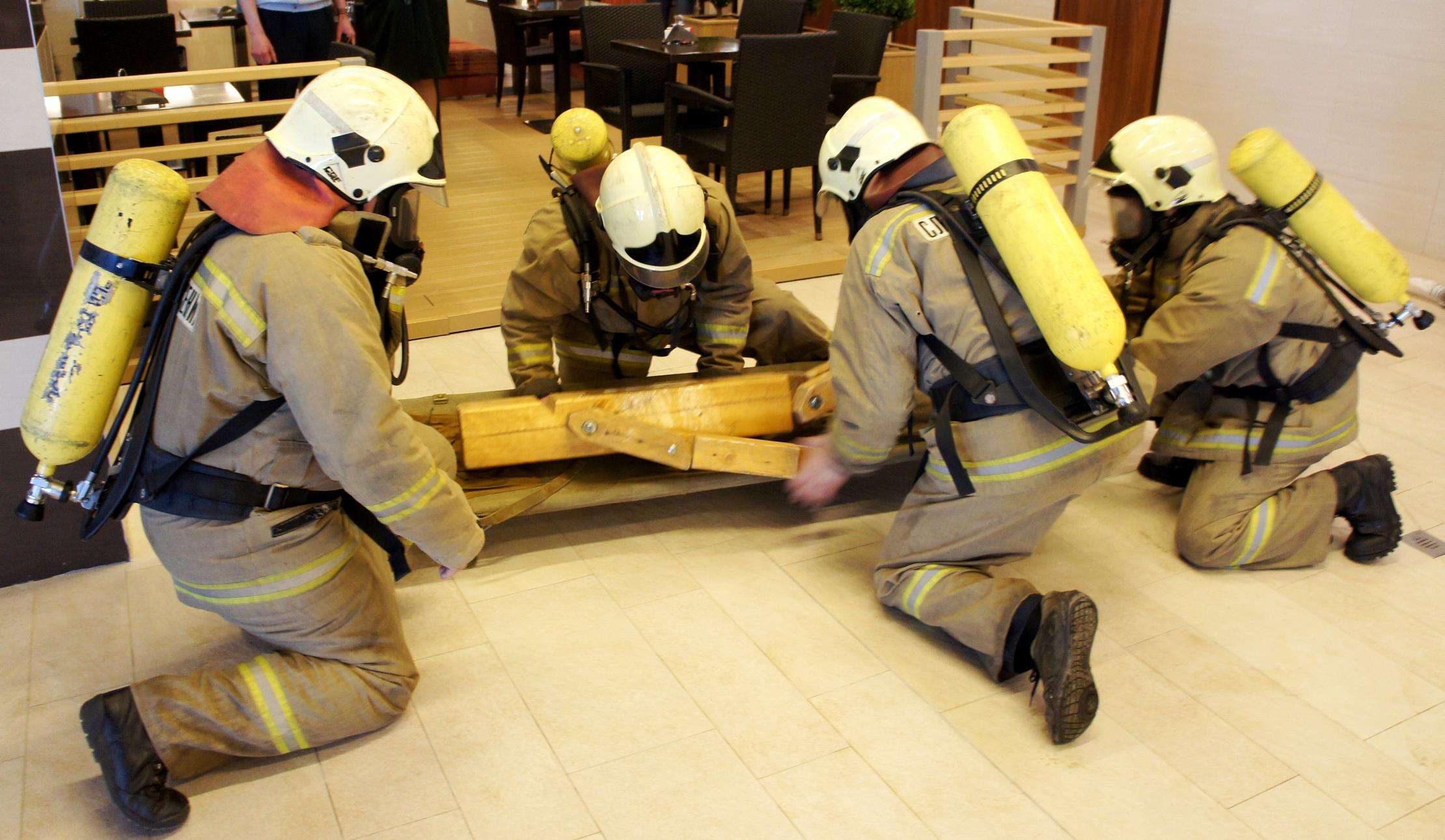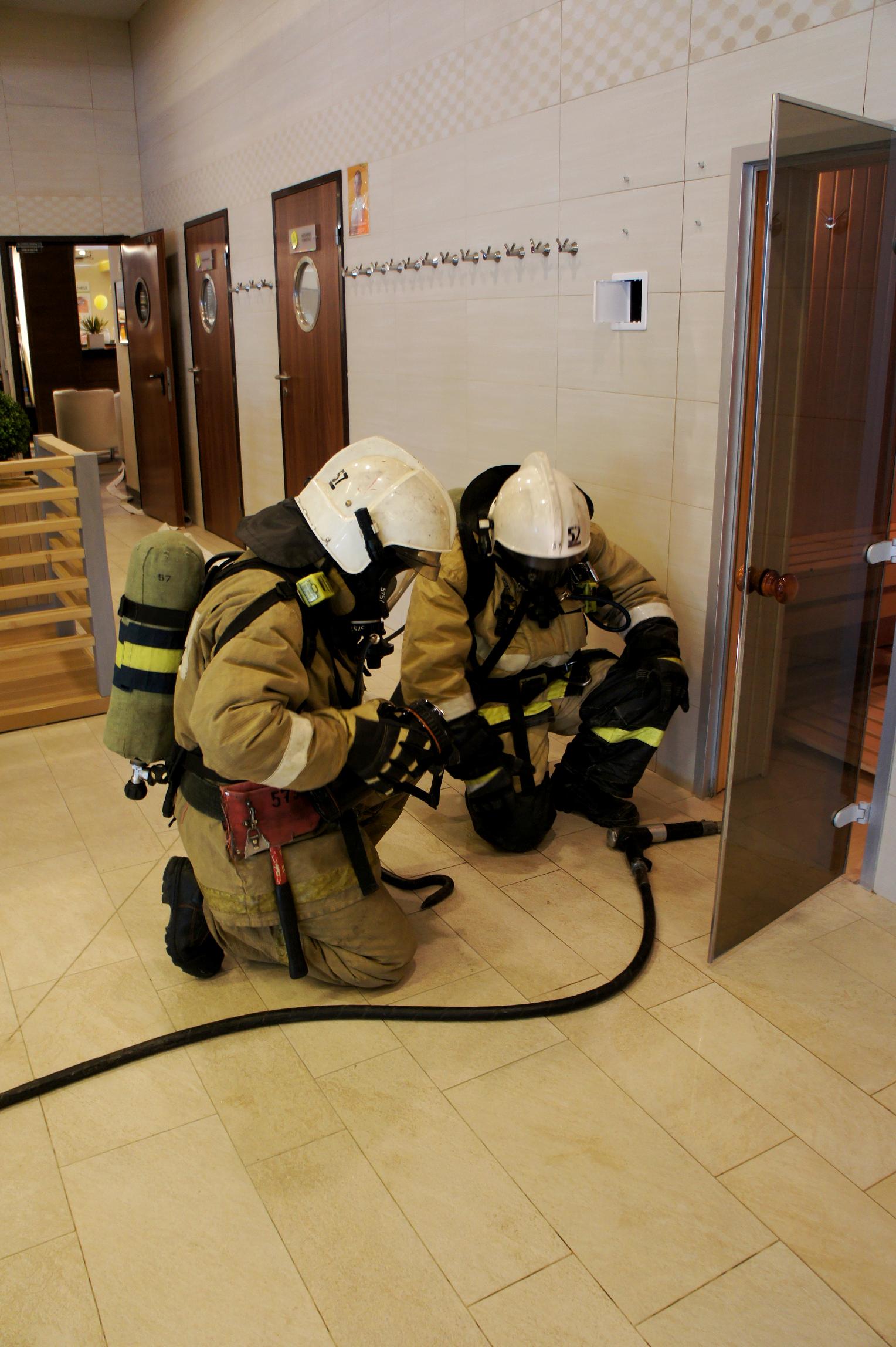 Следующий этап тренировки был практической отработкой действий спасательных подразделений. Перед прибывшими на место происшествия сотрудниками Поисково-спасательного отряда г. Уфы стояла задача найти и эвакуировать из опасной зоны пострадавшего; пожарным необходимо было ликвидировать очаг пожара. И со своими «вводными» специалисты справились: спасатели быстро обнаружили пострадавшего, аккуратно транспортировали его на носилках из помещения, передав в руки медицинского работника фитнес-клуба; пожарные оперативно потушили условное возгорание.