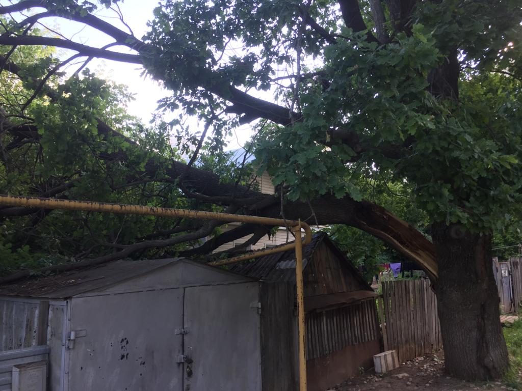 Сегодня вечером в Октябрьском районе Уфы произошло два случая падения деревьев. В частном секторе на ул. Верхоянской на сарай и газопровод упал старый дуб. Газопровод не пострадал, крыша сарая получила повреждения. На ул. Российской упавшее на придомовой территории дерево повредило три автомобиля. Из людей никто не пострадал. Коммунальные службы направлены для распиловки и уборки упавших насаждений.